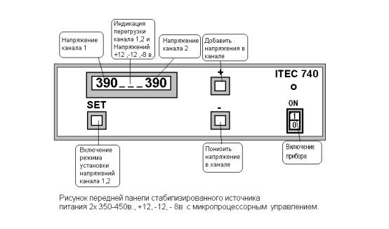 Стабилизированный высоковольтный двухканальный источник питания с микропроцессорным управлением и